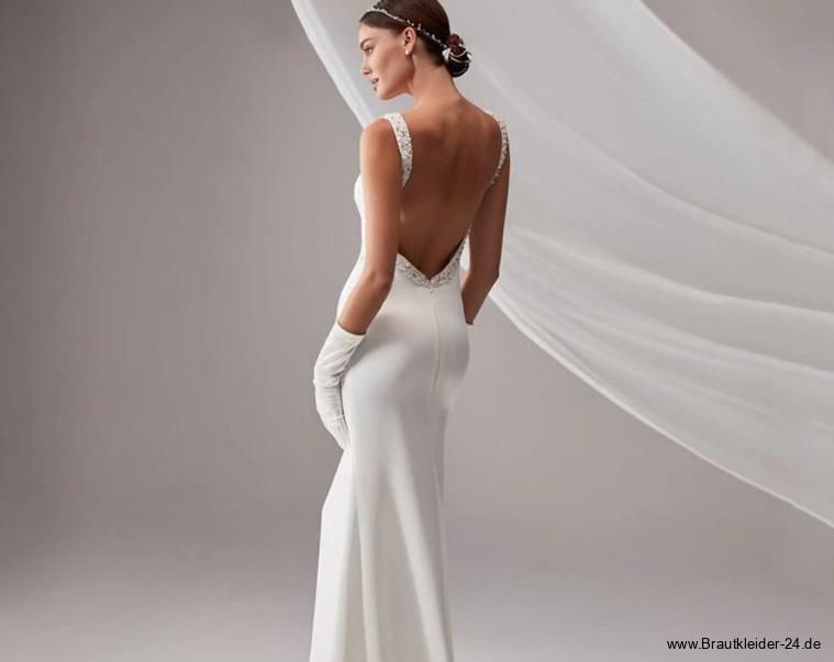 I Linie Brautkleid Luzie mit Sexy Rückenausschnitt und Perlen Pailletten Stickereien