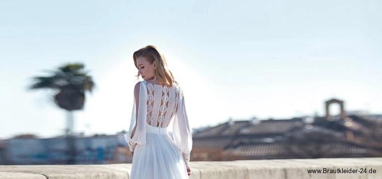 Langarm Brautkleid Luan mit Tattoo Spitze V Ausschnitt und Schleppe