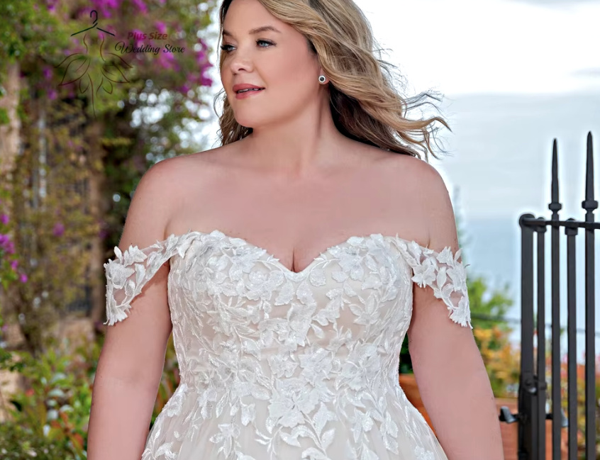 A Line Off Shoulder Wedding Dress Cleopatra with Lace also in Plus Sizes