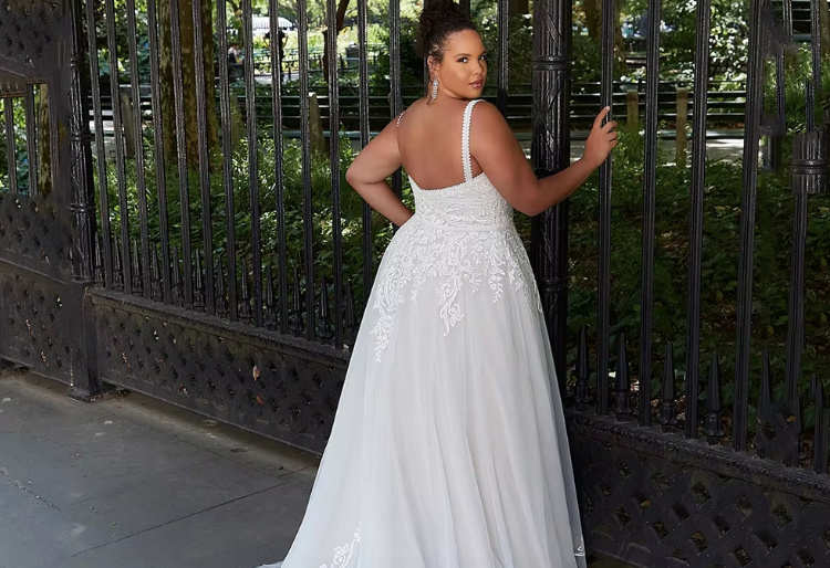 A line spaghetti strap wedding dress Dunja with lace also in plus sizes