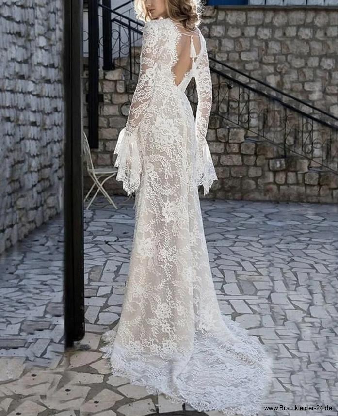 Boho Style Langarm Fit and Flare Brautkleid Lillemor aus Spitze Bodenlang