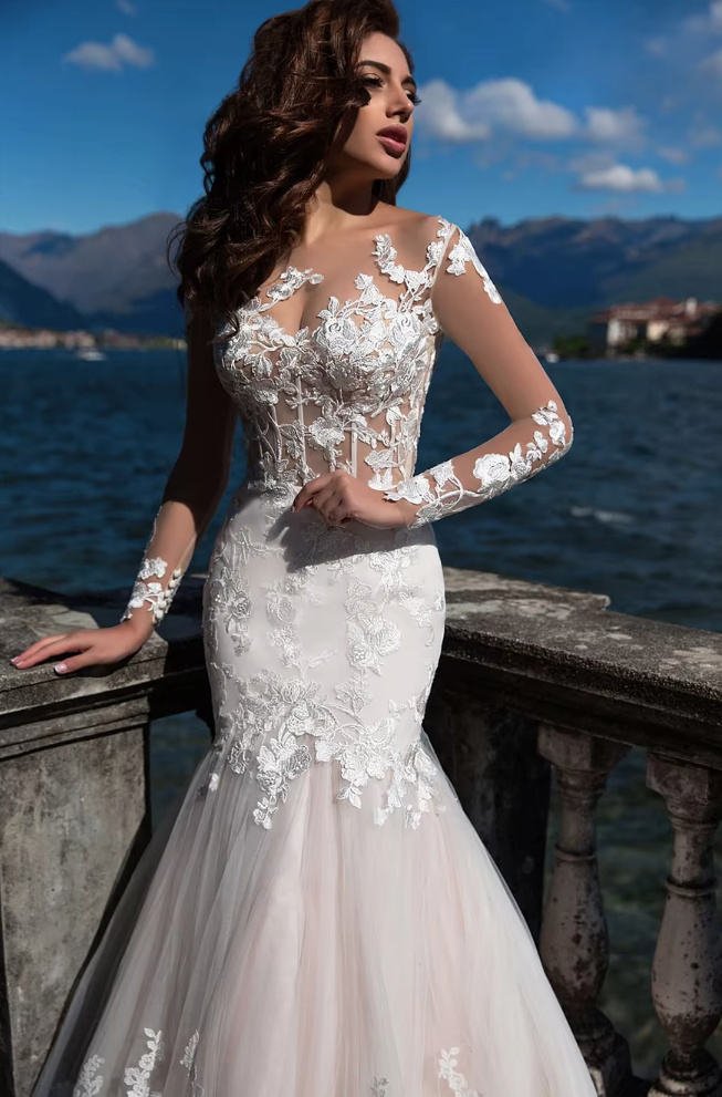 Sexy bodice mermaid wedding dress Diandra with sleeves and floral lace