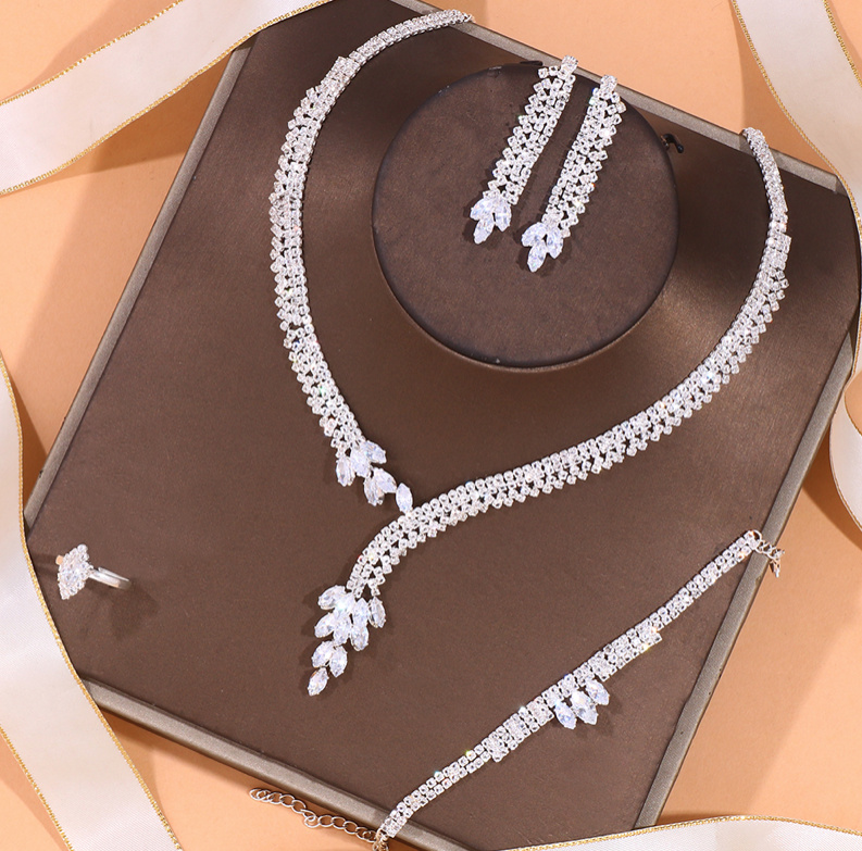 Rhinestone Bridal Jewelry Set Eltje Necklace Bracelet Earrings and Ring in Set