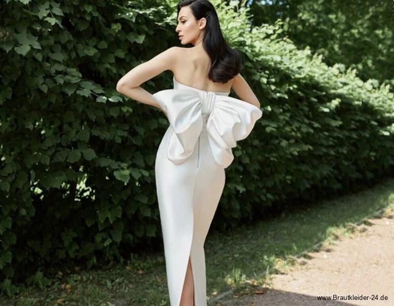 Schlichtes I Linie Satin Brautkleid Lari mit Schlitz und Schleife