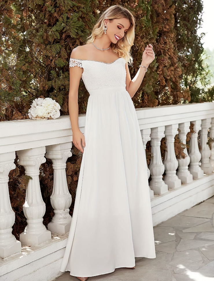 Off-the-shoulder empire civil wedding dress Daphne with lace