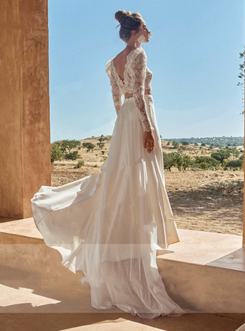 Sexy bridal outfit two-piece for the registry office in white with lace
