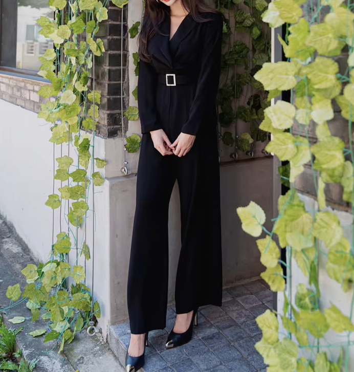 A Line Overall One Piece Jumpsuit Davide Elegant in Black