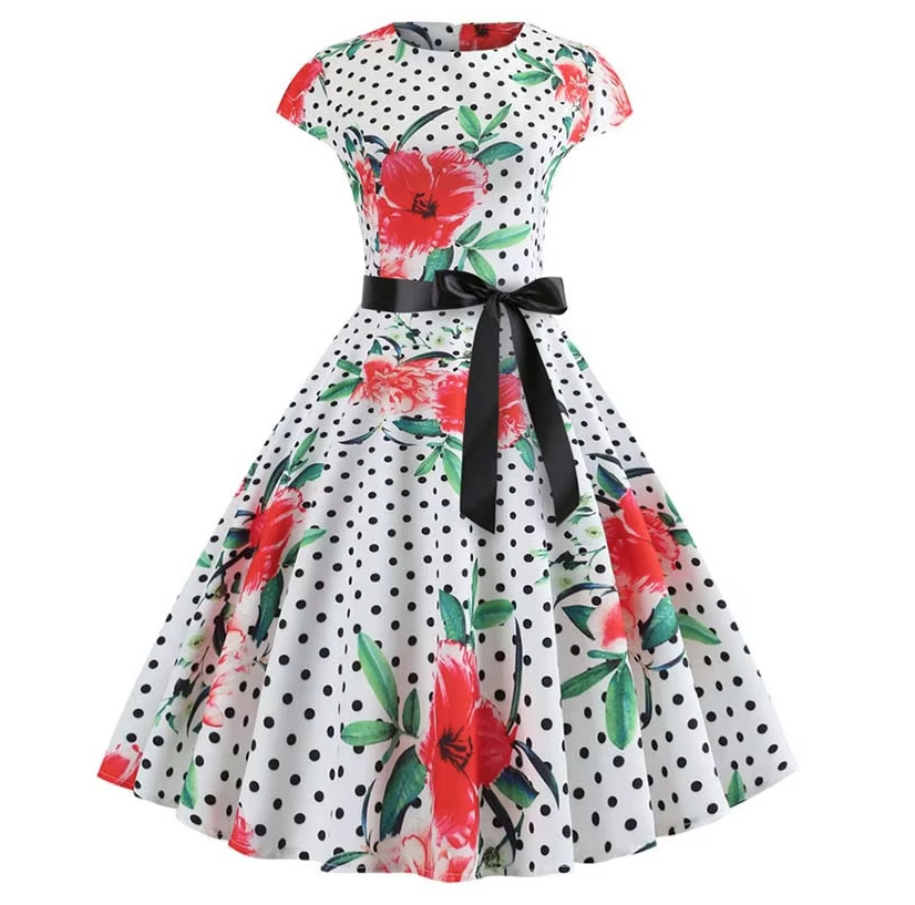 A Line Vintage 60s Rockabilly Dress Christel Knee Length with Floral Pattern