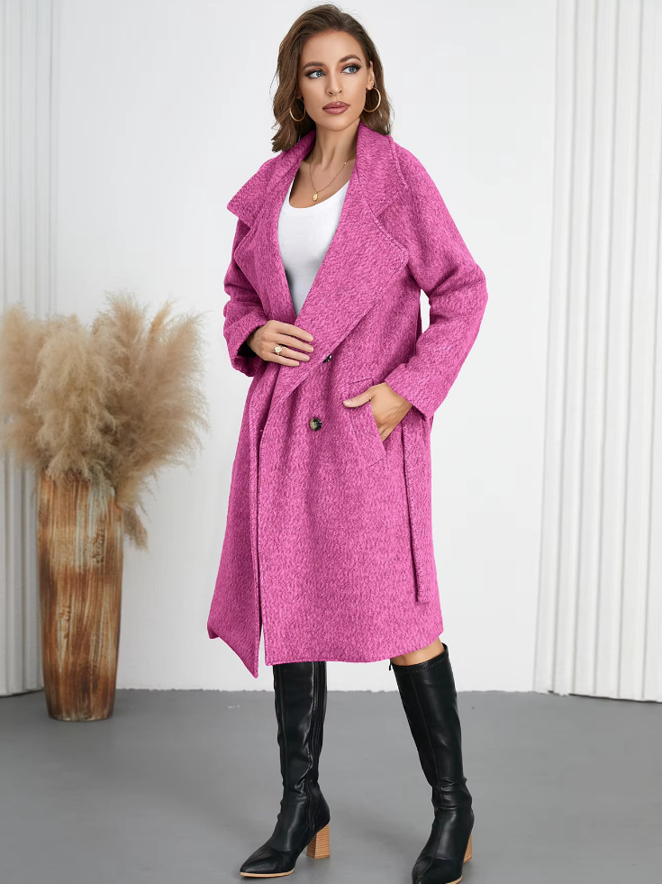 Eleganter Damenmantel mit Stehkragen Wadenlang in Pink
