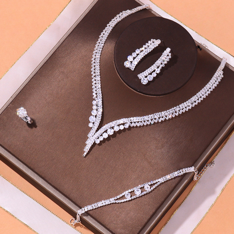 Rhinestone Bridal Jewelry Set Elele Elegant in Silver Four Pieces