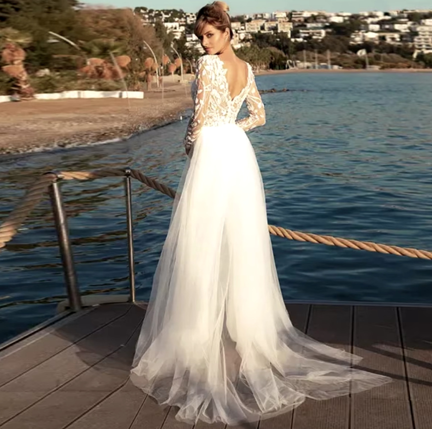 Bridal Overall One-Piece Christien with Lace Train Detachable