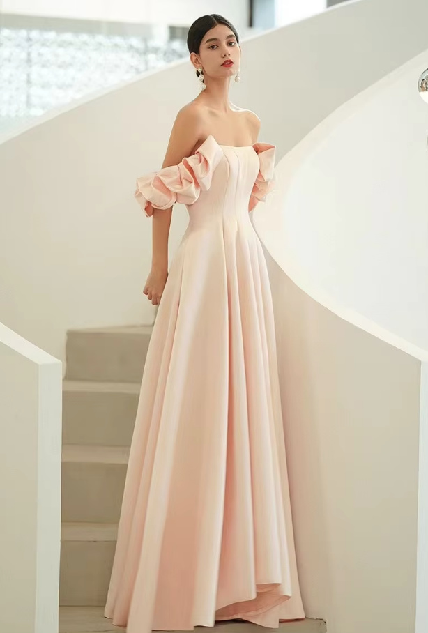 Romantic A-line wedding dress Clarissa off-the-shoulder in soft pink with train