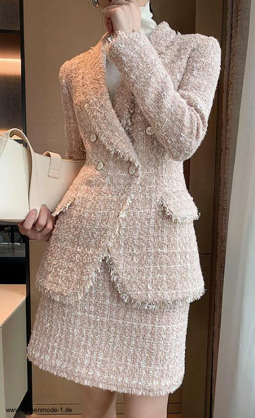 Tweed Damen Kostüm Elegant in Champagne Kurz