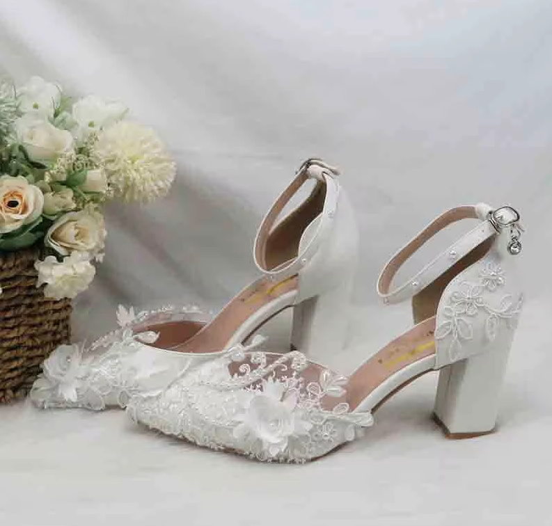 Wedding Shoes Bridal Sandals in White with Straps Flowers and Lace