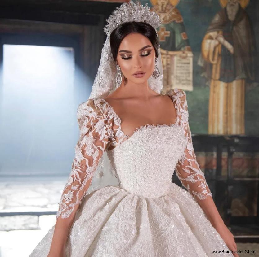 Langarm Glitzer Prinzessin Brautkleid Lari mit Tattoo Spitze und Schleppe
