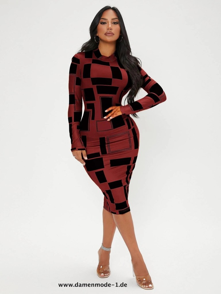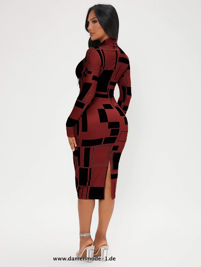 Bodycon Midi Kleid für Damen Knielang in Dunkelrot