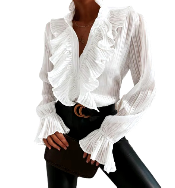 Long-sleeved chiffon blouse Eleonora for the registry office in white