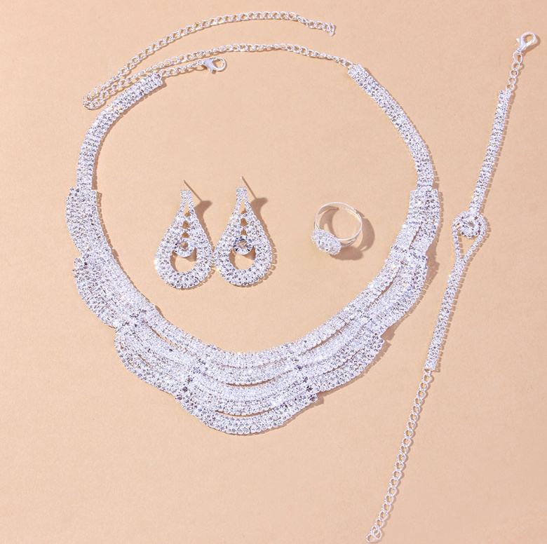 Multilayer Rhinestone Bridal Jewelry Set Eireann Necklace Earrings Bracelet and Ring