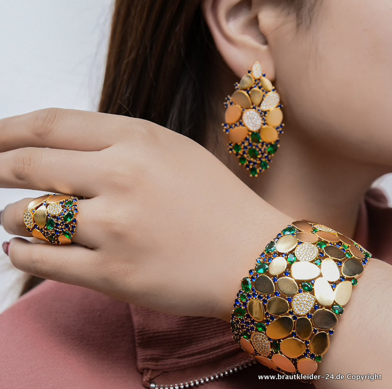 Pailletten Luxus Dubai Style Brautschmuck Set in Gold