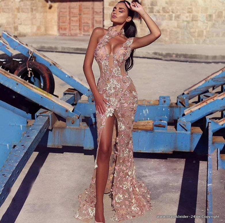 Sexy Cut Out Brautkleid in Champagne mit Blumenspitze