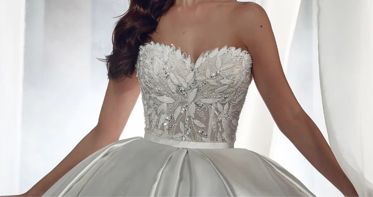 Ball Line Princess Luxury Wedding Dress Birgitte with Pearl Rhinestone Applications