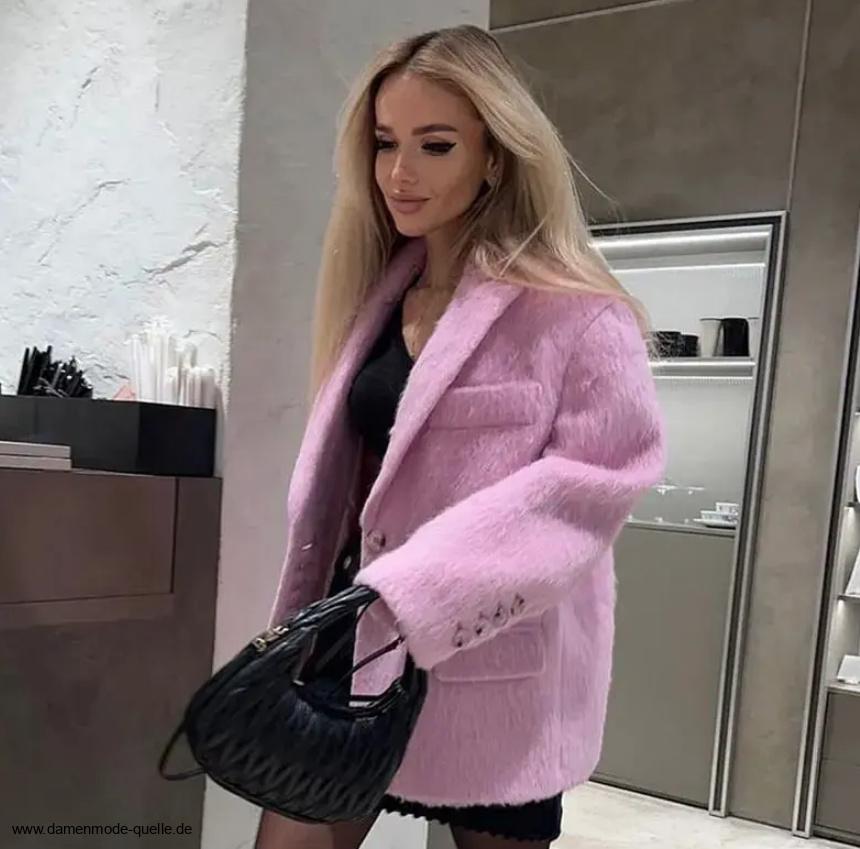 Plüsch Wollmantel mit Kragen Kurz Elegant in Rosa