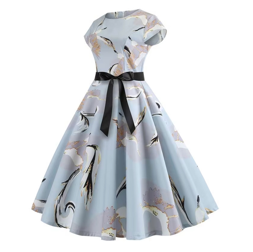 A Line Vintage 60s Rockabilly Dress Charline Knee Length in Light Blue