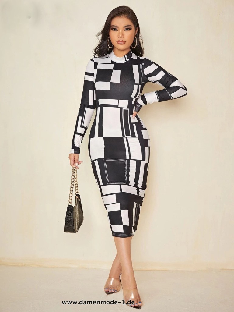 Bodycon Midi Kleid für Damen Knielang in Weiß