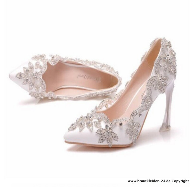 Brautschuhe in Weiß Elegant mit Diamant Applikationen