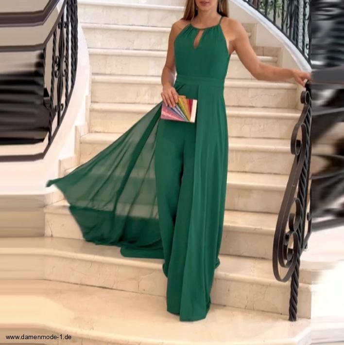 Damen Chiffon Einteiler Jumpsuit Ärmellos Elegant in Grün
