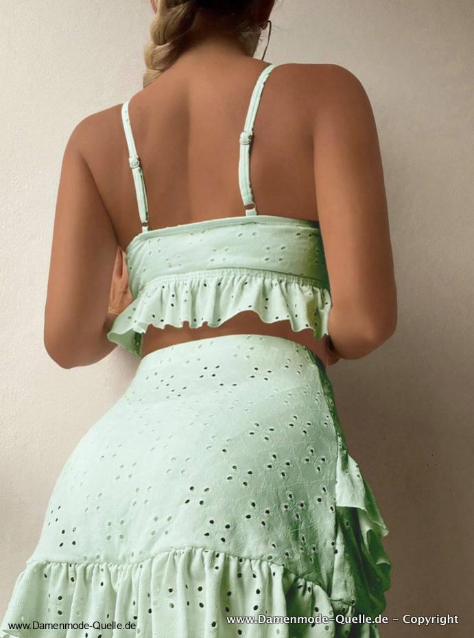Dreiteiliges Bikini Set mit Rock in Mintgrün