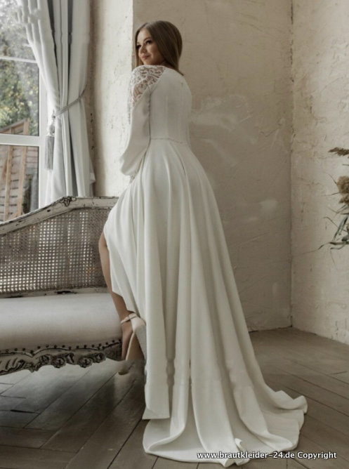 Elegantes V Ausschnitt Brautkleid mit Ärmel Weiß
