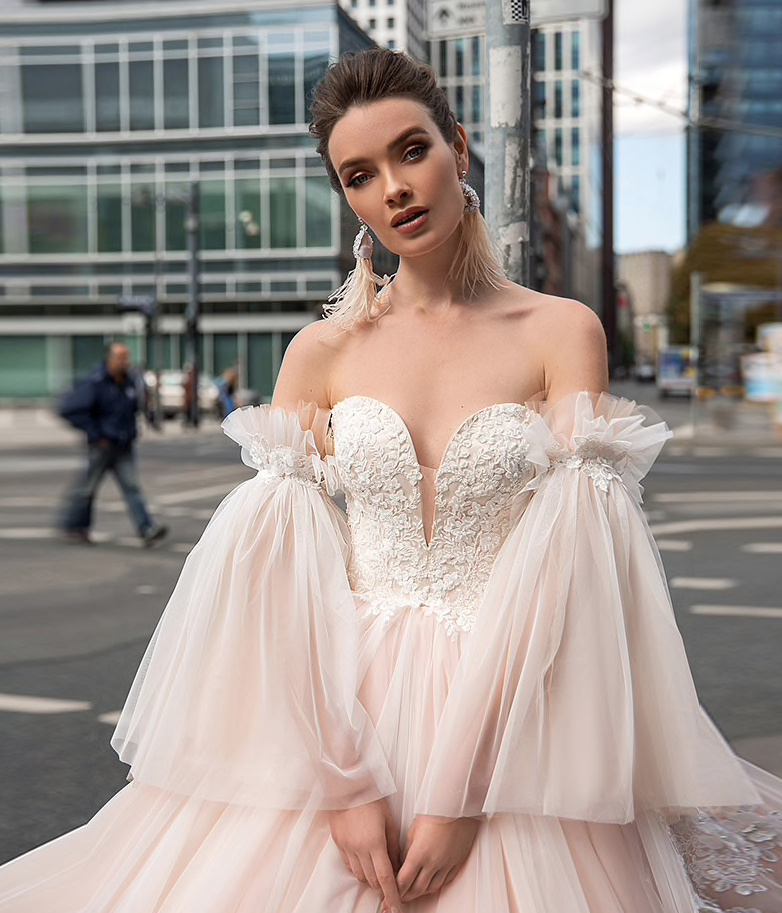 Vintage Style Ball Line Wedding Dress Dona with Lace Applications in Light Pink