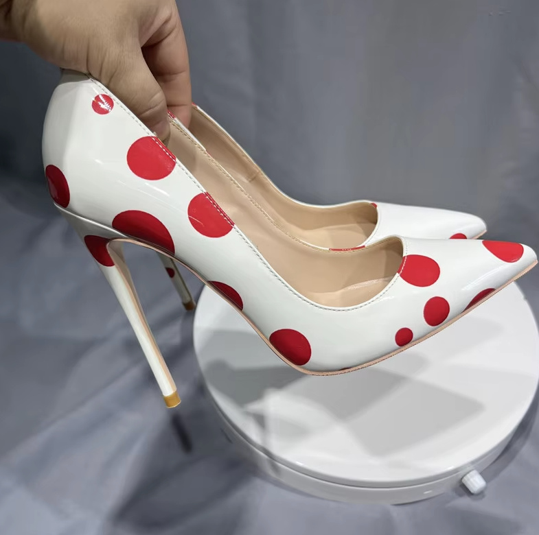 Graffiti High Heels Bridal Shoes Emely Online White Red Dotted up to Size 44