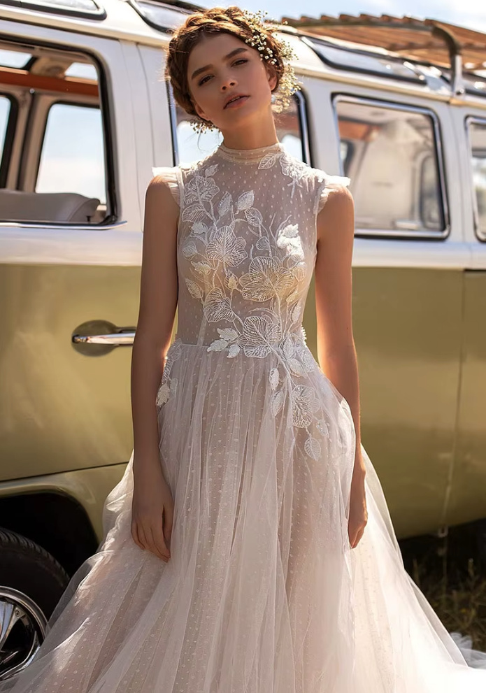 A line boho wedding dress Dalia with lace and tulle appliqués