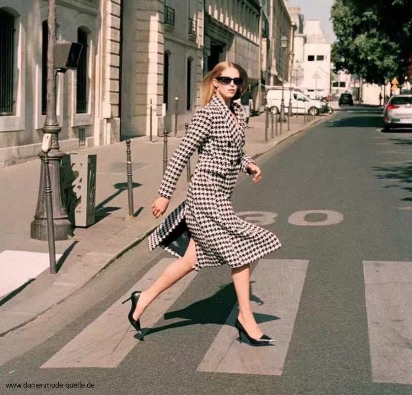 A Linie Damen Wollmantel Elegant mit Hahnentrittmuster