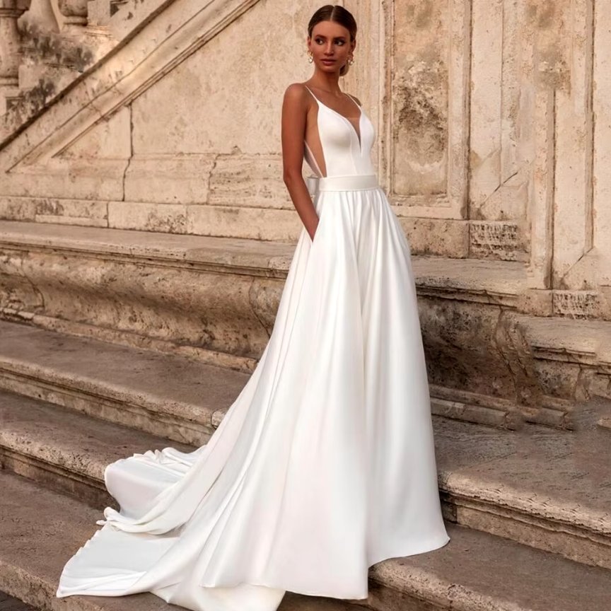 Spaghetti Strap Satin Wedding Dress Charis with Heart Neckline