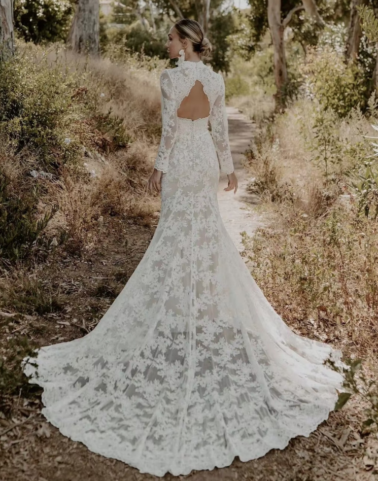 Boho Style I Line Long Sleeve Wedding Dress Diandra made of lace with train