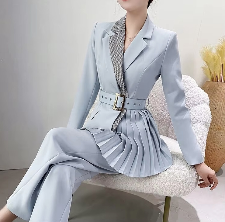 Women’s Pantsuit Elegant Pleated in Sky Blue