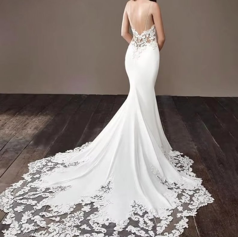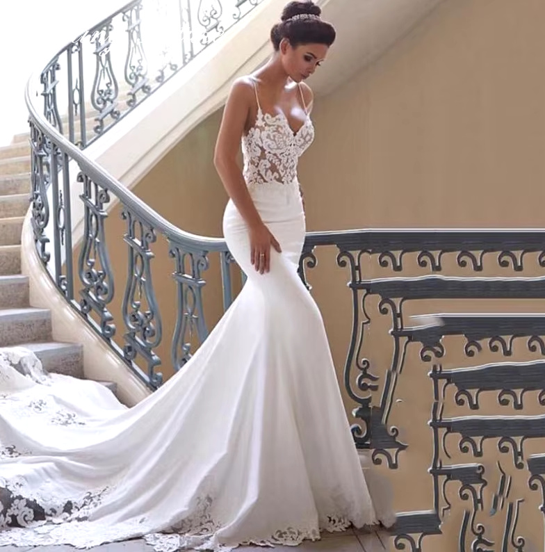 Mermaid wedding dress Ece with spaghetti straps and train