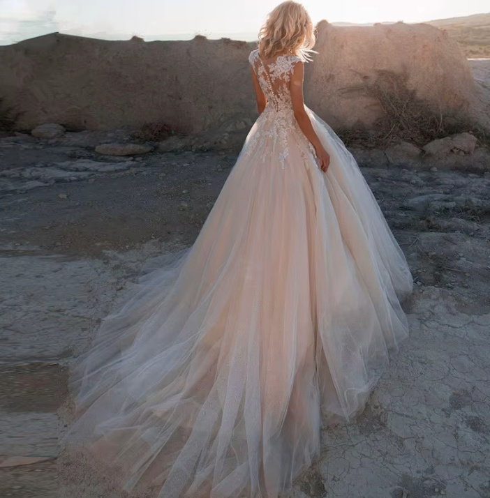 Sexy Sleeveless Wedding Dress Devi with Tulle Appliques Floor Length