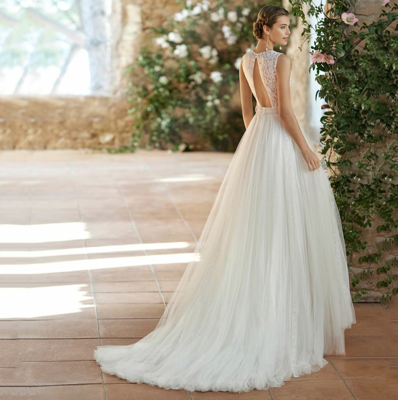 Romantic A-line wedding dress Finnja with lace and V neckline