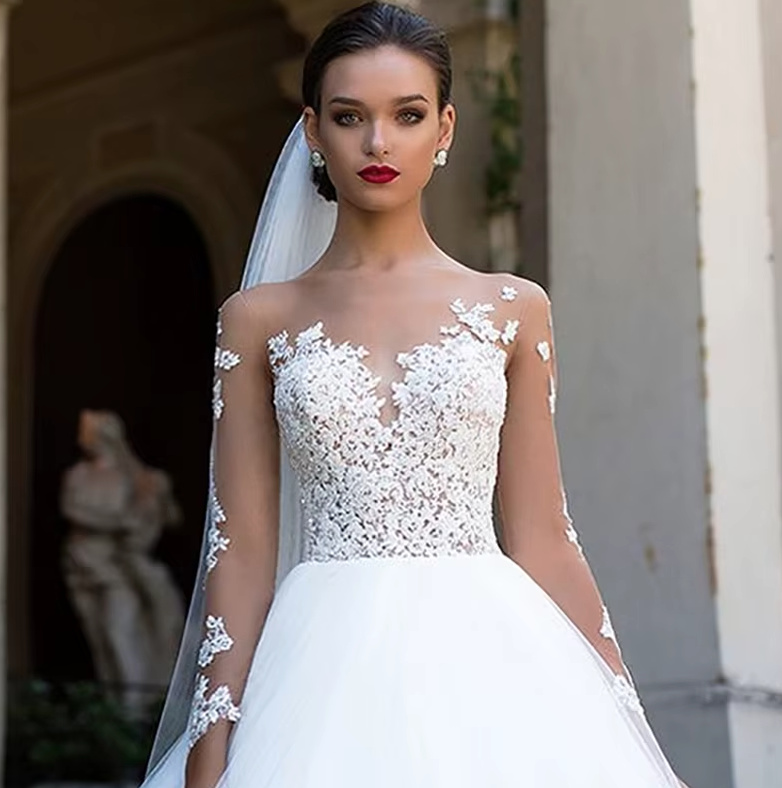 A Line Long Sleeve Wedding Dress Ellen with Flowers and Tattoo Top