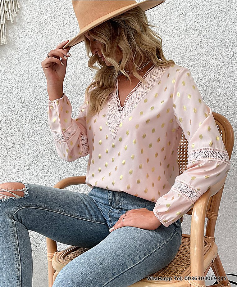 Women Spring Autumn Chic Elegant Gilded Blouse Long Sleeve Top