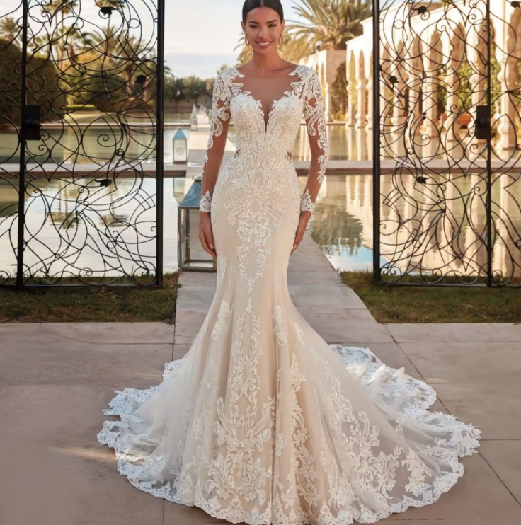 Long Sleeve Mermaid Wedding Dress Elfriede Embroidered with Lace and Train