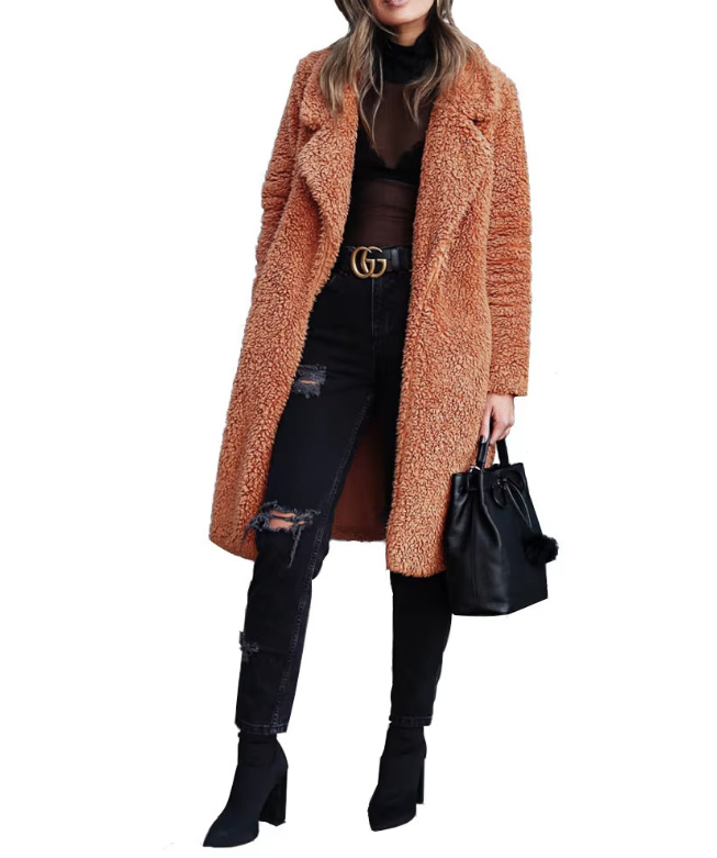 Long Warm Winter Jacket Catharina for Women in Caramel