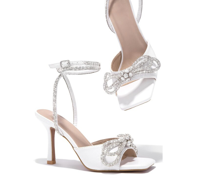 Rhinestone Sandals Bridal Shoes with Crystal Bow White