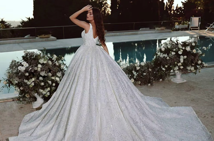 Ball line wedding dress Euphemia with sweetheart neckline pearls sequins and train