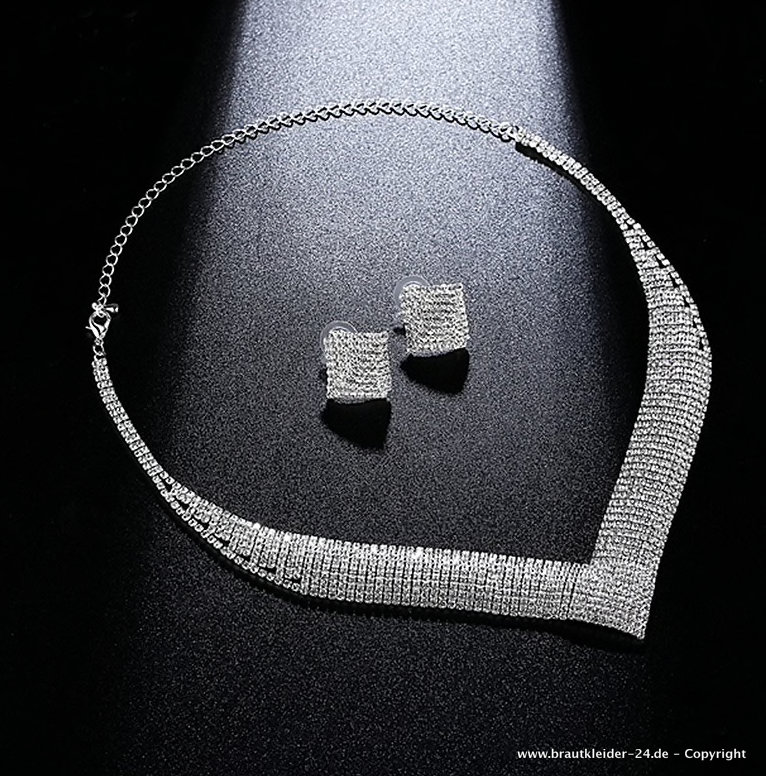 Luxus Kristall Brautschmuck Set in Silber Halskette mit Ohrringe