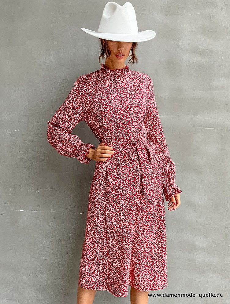 Elegantes Kleid für Damen Langarm Party Kleid mit Gürtel